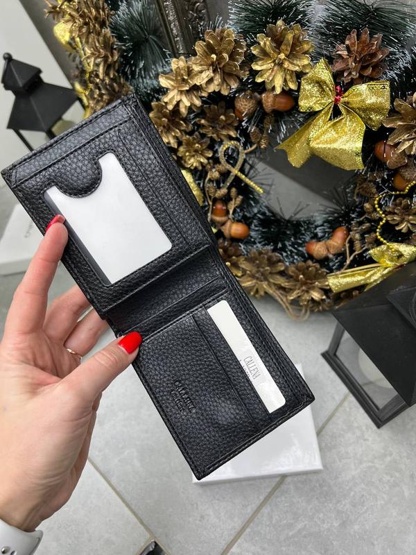 Черное практичное шикарное качественное портмоне из натуральной кожи в фирменной коробке