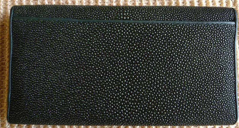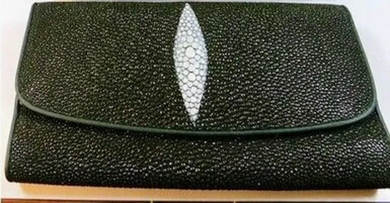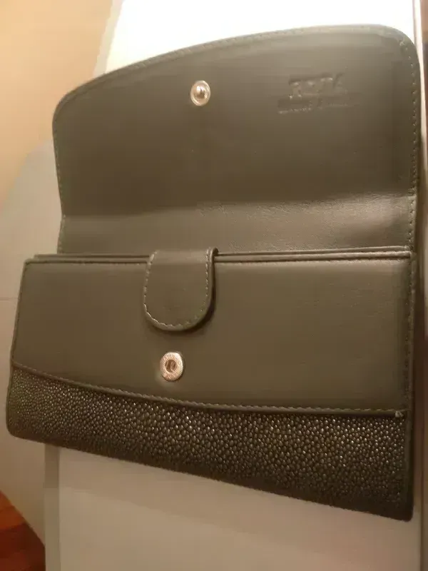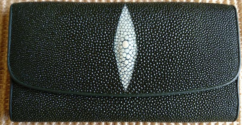 Кошелек женский из кожи ската.Материал: натуральная кожа ската Цвет: темно-зеленый Размер: 19 х 10 Производитель: Тайланд.