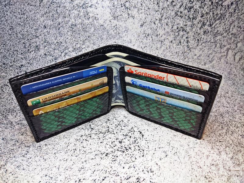 Нове гарне ексклюзивне чоловіче портмоне із натуральної екзотичної шкіри змії найвищої якості! Повністю ручна робота, від покраски до прошивки! Колір металік (зелено-чорний). Грає кольорами!