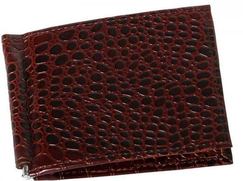 Зажим для купюр кожаный Brown Croco Vip Collection коричневый