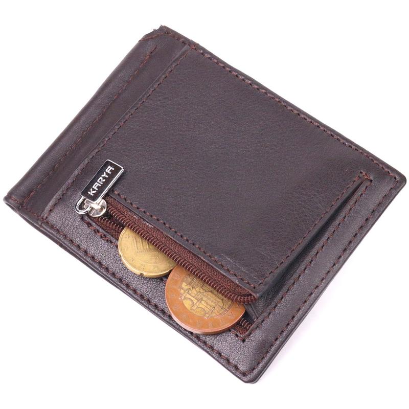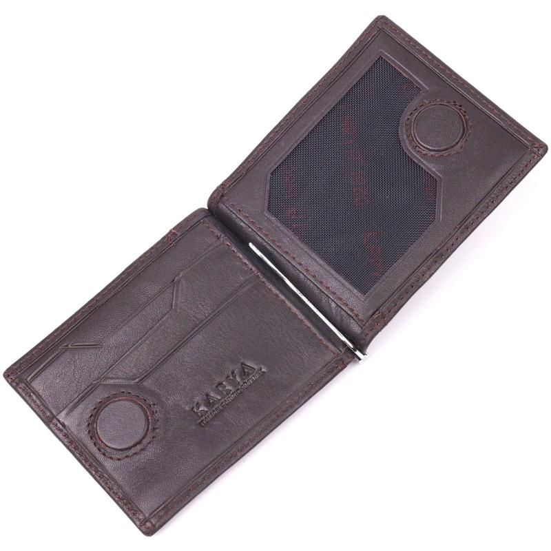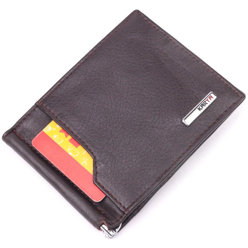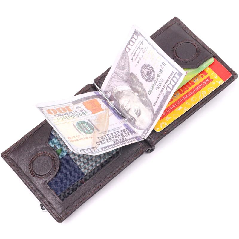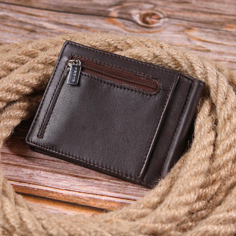 Практичный мужской зажим из натуральной кожи, в коричневом цвете. Изделие