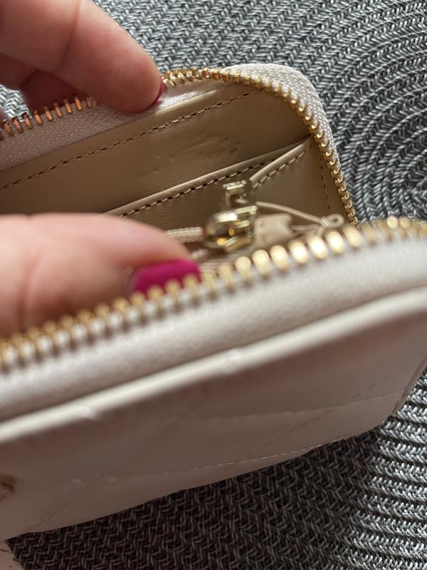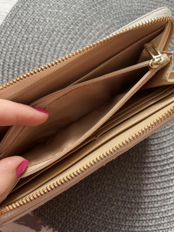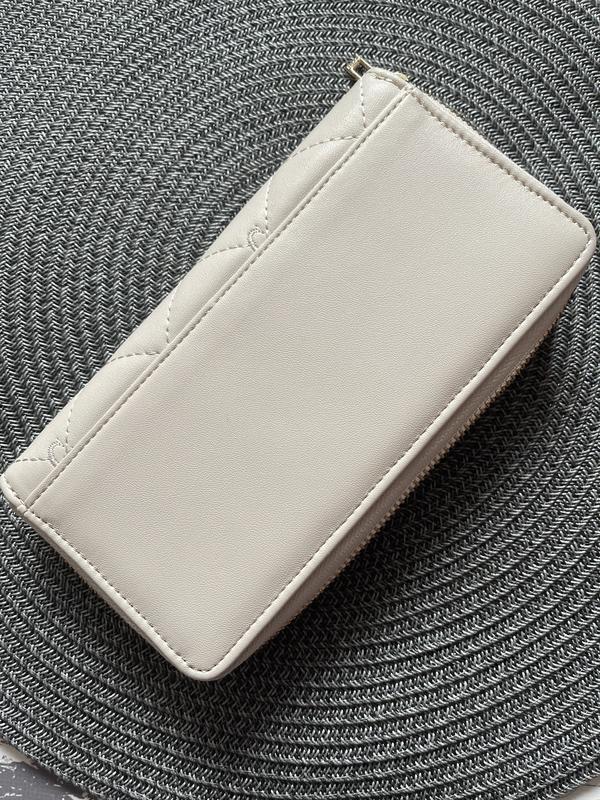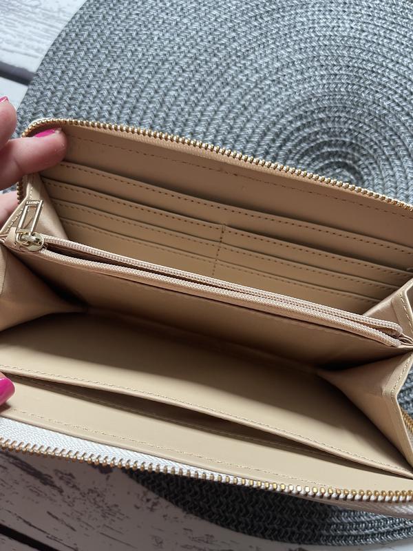 Кошелек оригинал, заказанный с официального сайта,носился пару раз, и помещается в сумки,все маленькие.Легкий, нежный цвет.Стан нового,без дефектов, в идеальном состоянии, только внутри следует от бегунка, на фото 6 видно.