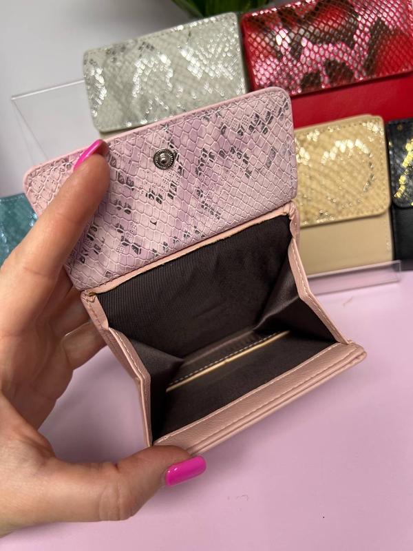 9х10 см. На кнопке. Отделение для мелочи на кнопке. Эко кожа очень мягкая и приятная на ощупь. В коробке.