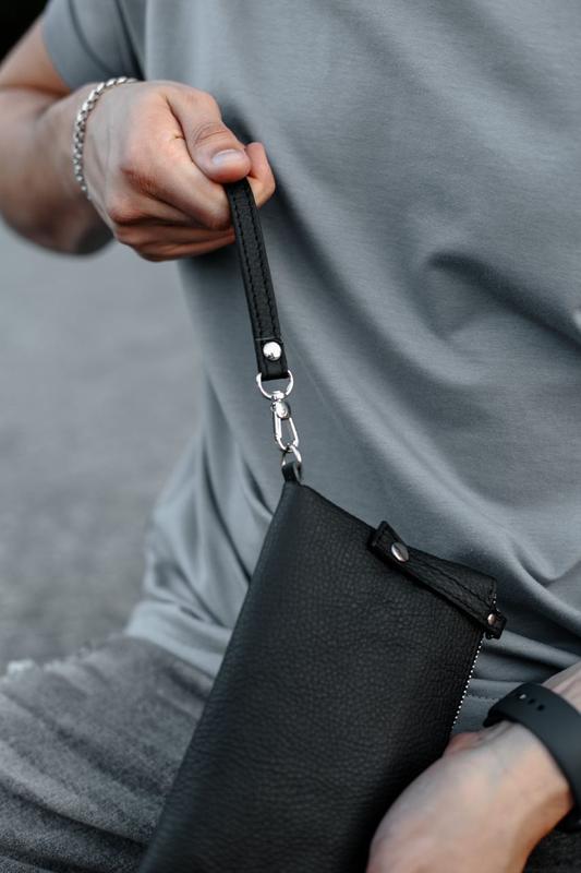 Артикул SL030• Материал: натуральная кожа• 1 карман на молнии • Прочная габардиновая подкладка• Удобная кожаная ручка• Размер: 21*1*11,5см