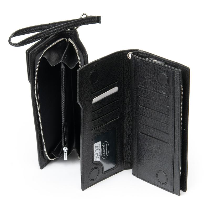 Большой кожаный кошелек DR. BOND. Выполнен из мягкой натуральной кожи. Переднее отделение закрывается на магнитные кнопки. Внутри находятся 11 карманов для визитных карт и 2 больших открытых кармана. Снаружи находится двойное отделение для банкнот, разделенное карманом-монетницей на молнии. На фасаде кошелька расположен большой карман на молнии. У комплекті є знімна кистьова ручка. Размер (см) 19,5*10,5*3