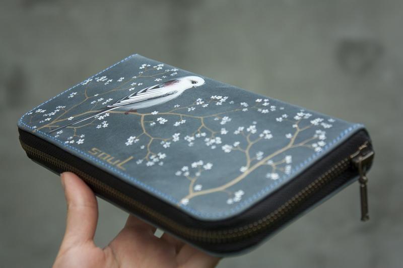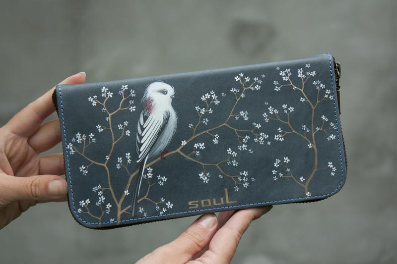 Кошелек из натуральной кожи на замке-молнии, декорирован ручной авторской росписью.