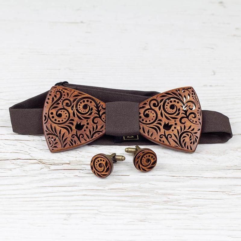 Комплект аксессуаров. деревянная бабочка с запонками tulips