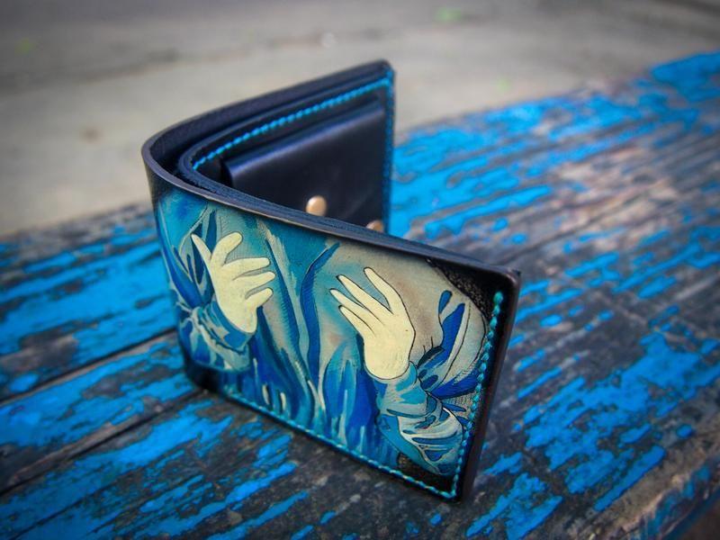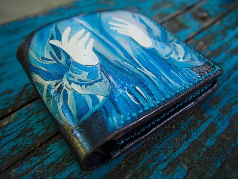 Все наши изделия выполнены полностью вручную. От раскроя, до прошивки. При нанесении рисунка мы используем технику пирографии. Изделие удобно сидит в руке, кожа приятная на ощупь. Детализированный рисунок также вносит свой вклад в эстетику изделия.
