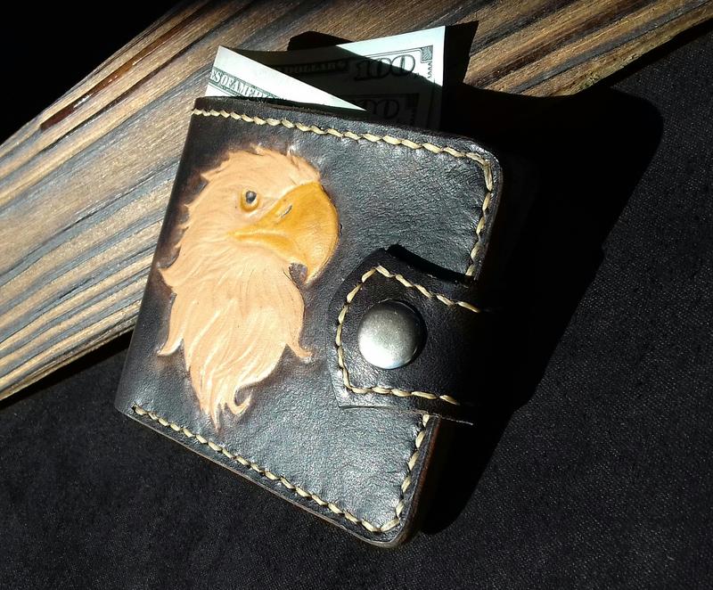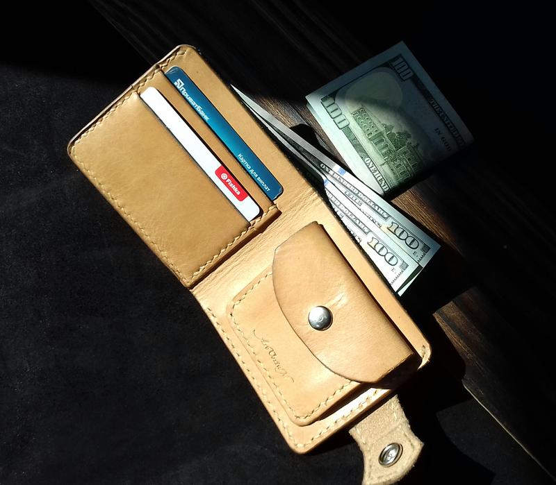 Гаманець з натуральної шкіри рослинного дублення,з ручним тисненням .прошитий в ручну міцною провощеню ниткою.