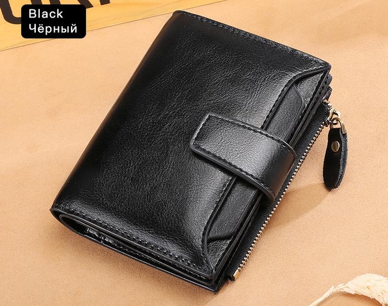 Удобный компактный кожаный кошелёк на молнии с отделением для купюр, монет, визиток или пластиковых карт