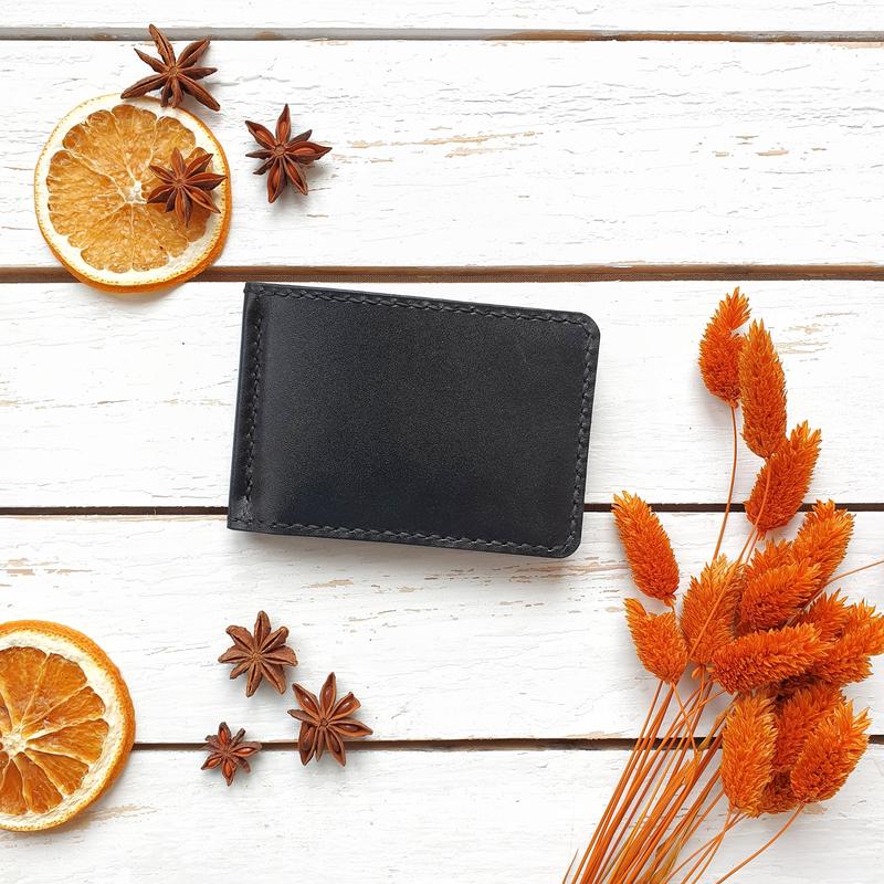 Качественный и стильный зажим для денег из натуральной кожи. Ручная работа. Внутри 1 отделение для купюр и 4 отделения для карт. Доступен под заказ в нескольких цветах кожи (наличие уточняйте)