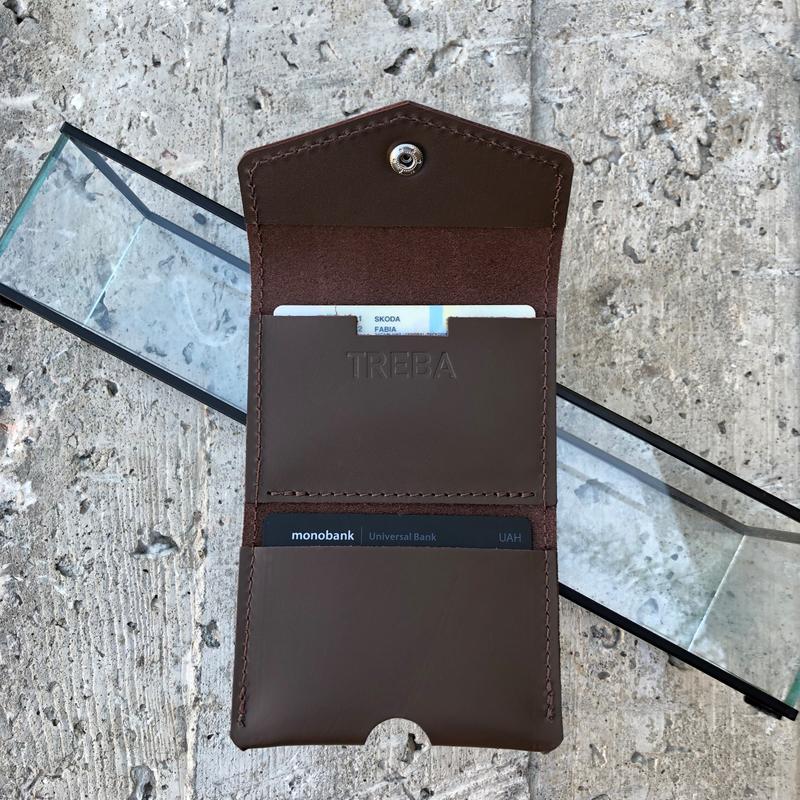 Мини кошелек - кардхолдер. Тонкий и вместительный, изготовлен из натуральной кожи. Изделие имеет два вместительных отделения для пластиковых карт которые можно использовать для хранения купюр которые можно поместить в одну из карманов согнув пополам. Благодаря особенностям конструкции карточки легко вынимать, в кардхолдер можно поместить до 10-ти пластиковых карт. Незаменимая вещь летом!
