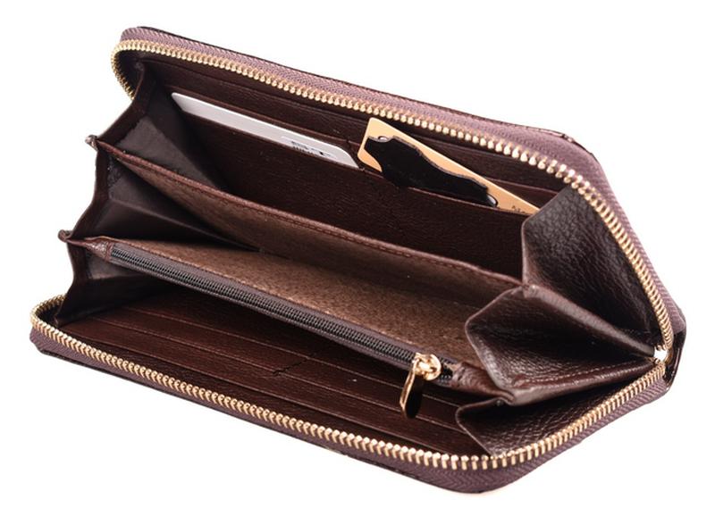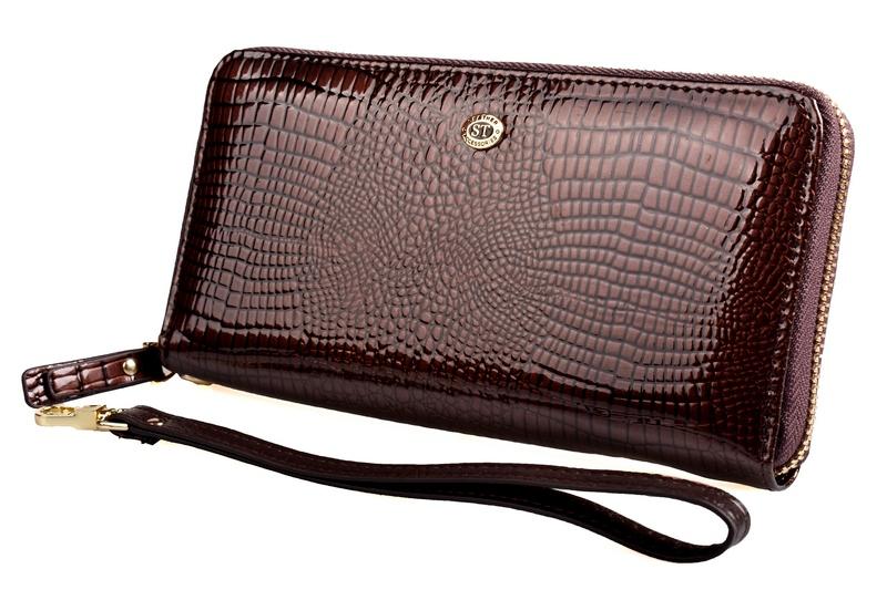 Женский кожаный кошелек ST на молнии. Закрывается на молнию. Внутри три открытых отделения для банкнот, монетница на молнии, два больших кармана и 8 карманов для визиток. В комплекте кистевой ремешек. Размер (см.) 19*9,5. Поставляется в фирменной коробке.