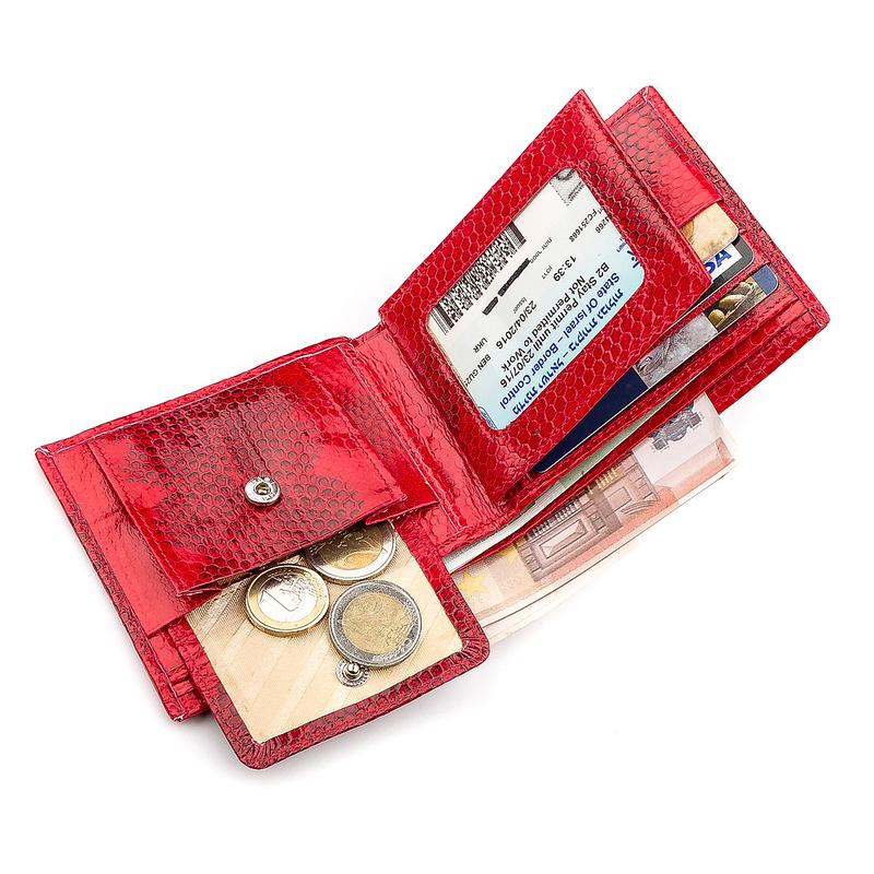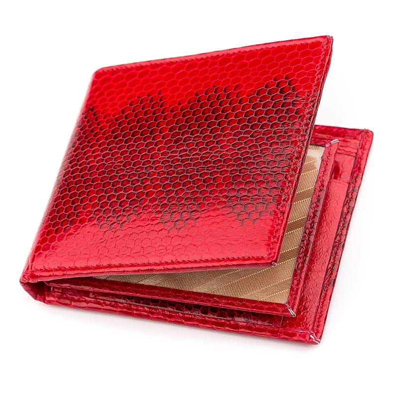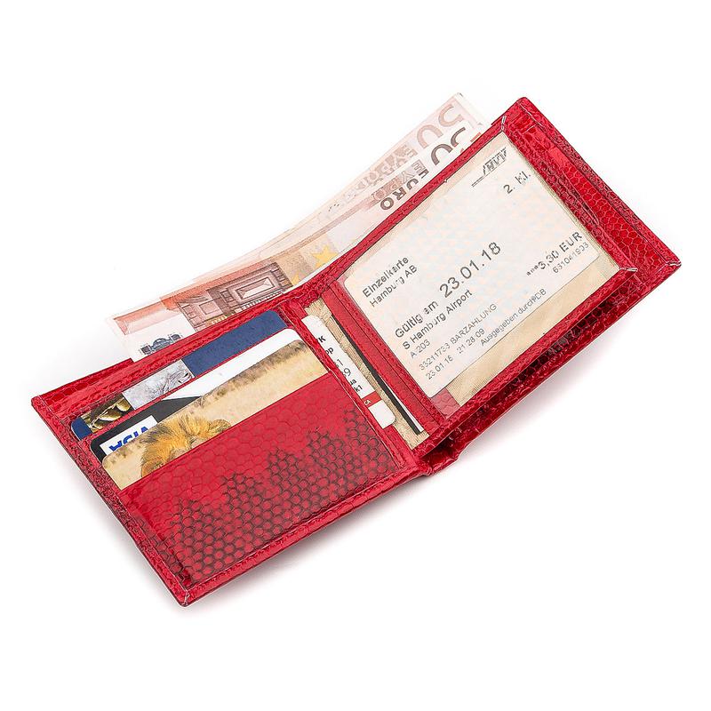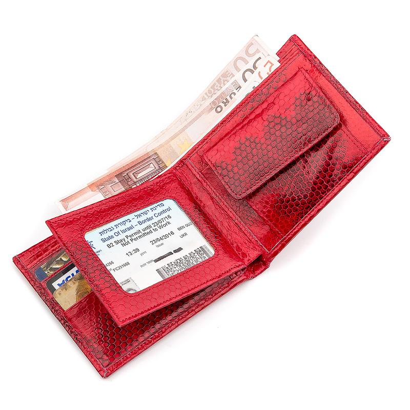 Яркий кошелек красного цвета из натуральной кожи морской змеи с оригинальным