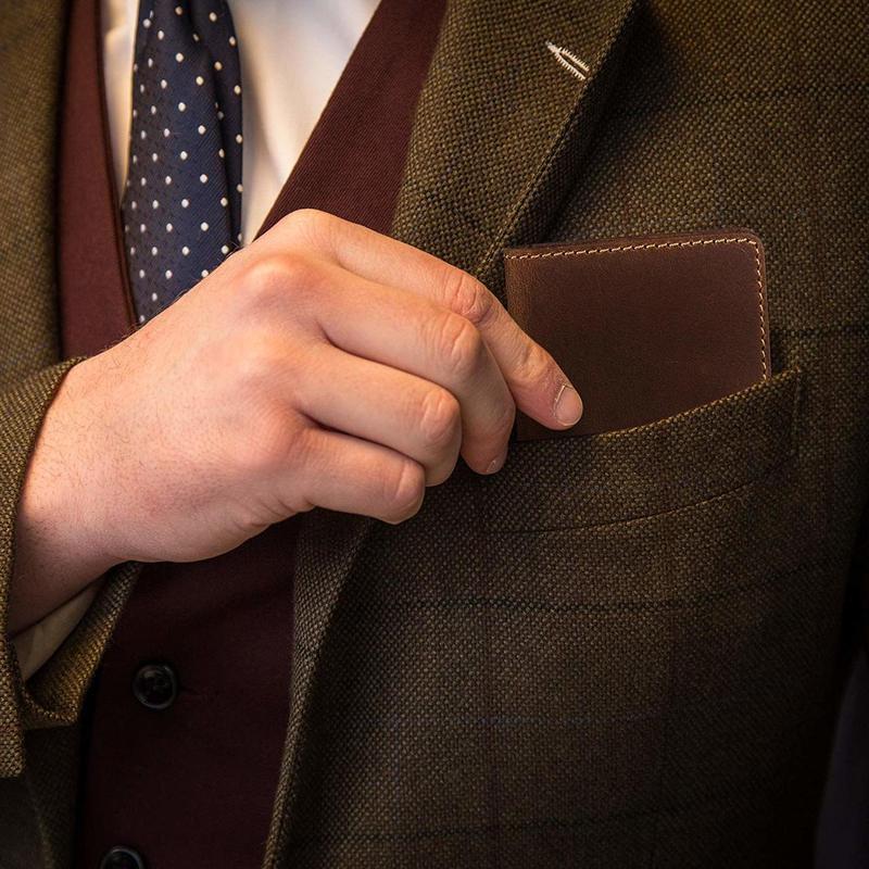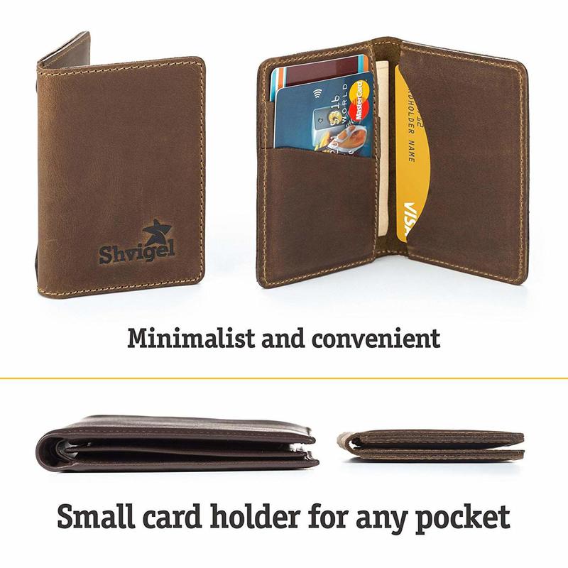 Красивый холдер для визиток, коричневого цвета, изготовлен из натуральной кожи