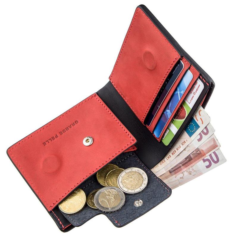 - 3 слота под кредитки из натуральной кожи красного цвета;