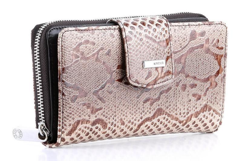 Материал: натуральная кожа; Размеры (ШхВ, см): 19х10; Цвет: бежевый; Страна производитель: Турция. Описание: - два автономных больших отделения: одно на молнии, другое на магните; - отделение на молнии: - три больших отсека для купюр; - монетница на молнии; - отделение на магните: - один скрытый карман; - 15 карманов для карточек (три из них под сеточкой); - кошелек упакован в фирменную коробочку. Изысканный женский кошелек, из натуральной кожи с узором под рептилию. В аксессуаре использована качественная и стильная фурнитура, внутренняя отделка: кожа и текстиль. Такой кошелек очень вместительный, в него легко помещается мобильный телефон, документы и другие мелочи. Отличная идея для подарка, которая не оставит равнодушной ни одну женщину.