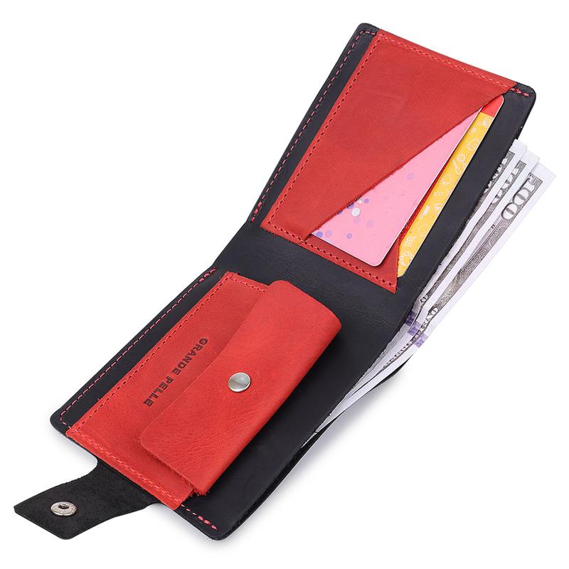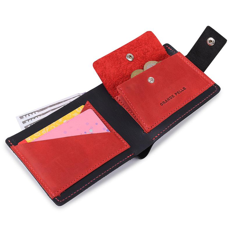монетницу на кнопке. Выполнено изделие в черном цвете с сочетанием красного,