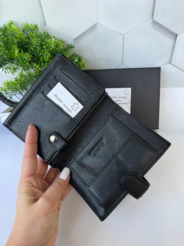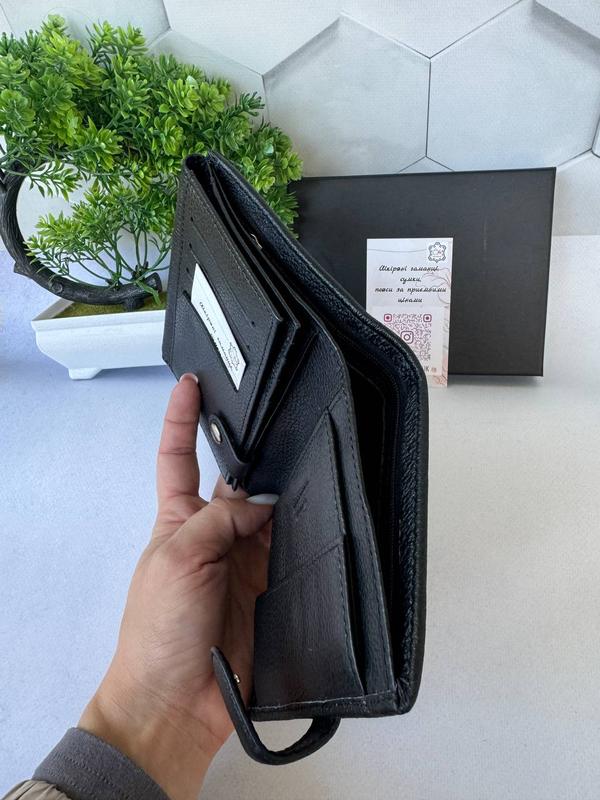 Вертикальное портмоне из натуральной кожи с 2 отделениями под банкноты (1 молния), внутри - откидной блок с застегивающимся клапаном, отделение для мелочи, 5 больших карманов, 8 карманов под карты. Размер (см) 10,5*14*2