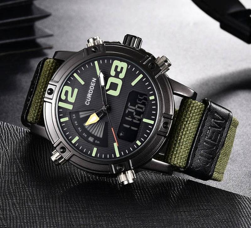 Материал корпуса – металл;Высота корпуса: 1 см;Диаметр циферблата: 4,5 см;Ширина ремешка: 2,4 см;Функции: будильник, подсветка, секундомер, дата;Все циферблаты активны;Механизм: кварцевый (на батарейке);