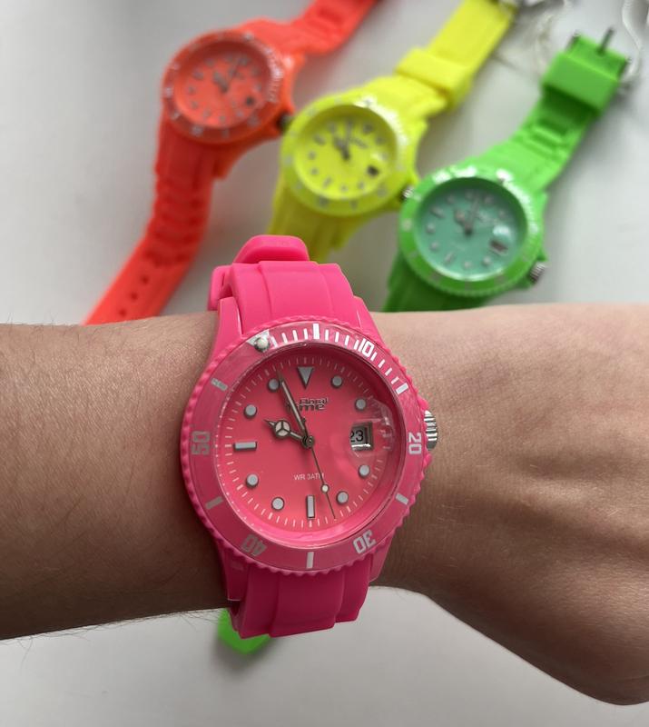 Новые детские подростковые часы с LED экраном, подвижным кругом минут и текущей датой.Есть в розовом, оранжевом, желтом и салатовом цветах.Ремешок на руку от 14 до 23 смОтличный подарок детям на Николаю)