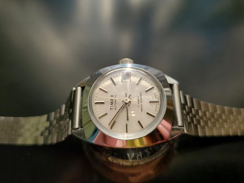 Довольно редкая коллекционная модель от известного бренда Timex, 60ти, часы механические с автоматическим подзаводом, корпус и браслет нержавейка, страна производитель Швейцария, механизм на 17 камнях, размер корпуса 30.8х27х12.2мм, ширина браслета 13мм, на запястье до 19см с плавной регулировкой размера, хода точная но так как дата последнего обслуживания неизвестно то лучше показать мастеру, на браслете и корпусе присутствуют несколько вм"тин и царапин но в реале абсолютно ничего не заметно, стекло чистое, часы привезенные из Америки из частной коллекции,
