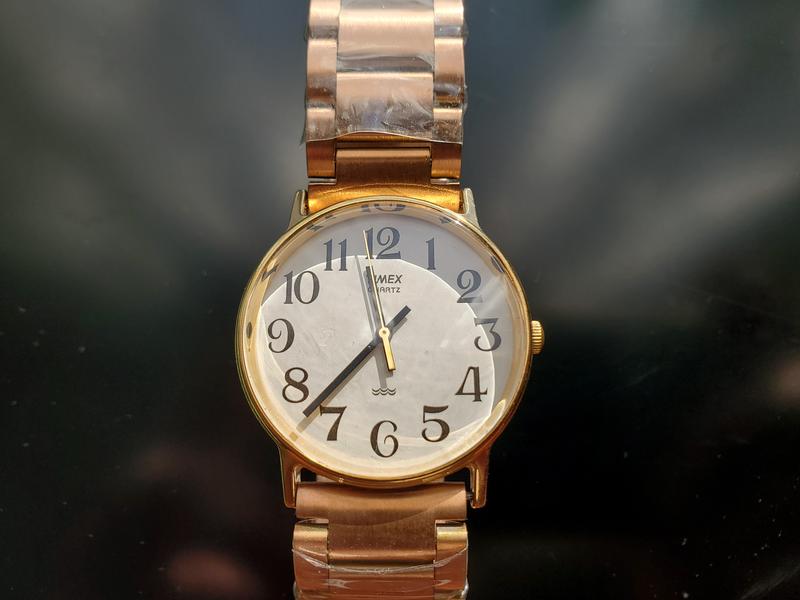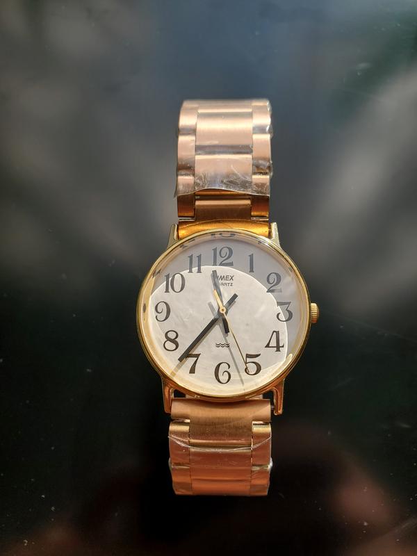 Золотистого тона кварцевые мужские часы с браслетом, привезенные из Америки, 80ти, Корпус Филиппины. Размер часов 37х32мм, на диаметр зап"ястья 6.5см, ширина браслета 18мм, браслет новый, достаточно тяжелый но качественный и удобный, тон немного не подходит к корпусу- могу подобрать стрейчевый в тон или, вероятно, кожаный ремешок, следы ношения заметны на заводной головке в реале вид суперовый. Качественные брендовые часы для мужчины, комфортные с хорошо заметными цифрами и точным ходом.