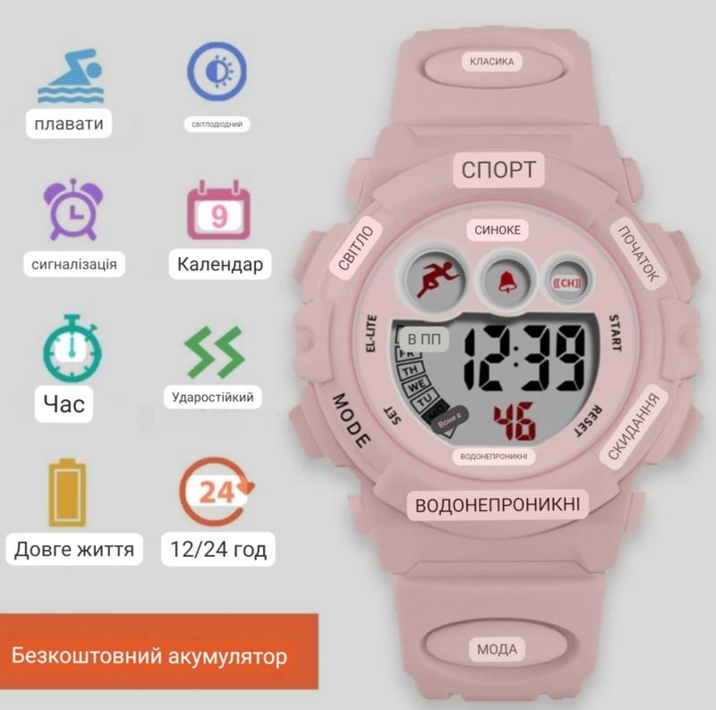 Стильные и функциональные часы с информативным дисплеем и яркой подсветкой, возможность отображения даты, встроенный секундомер.