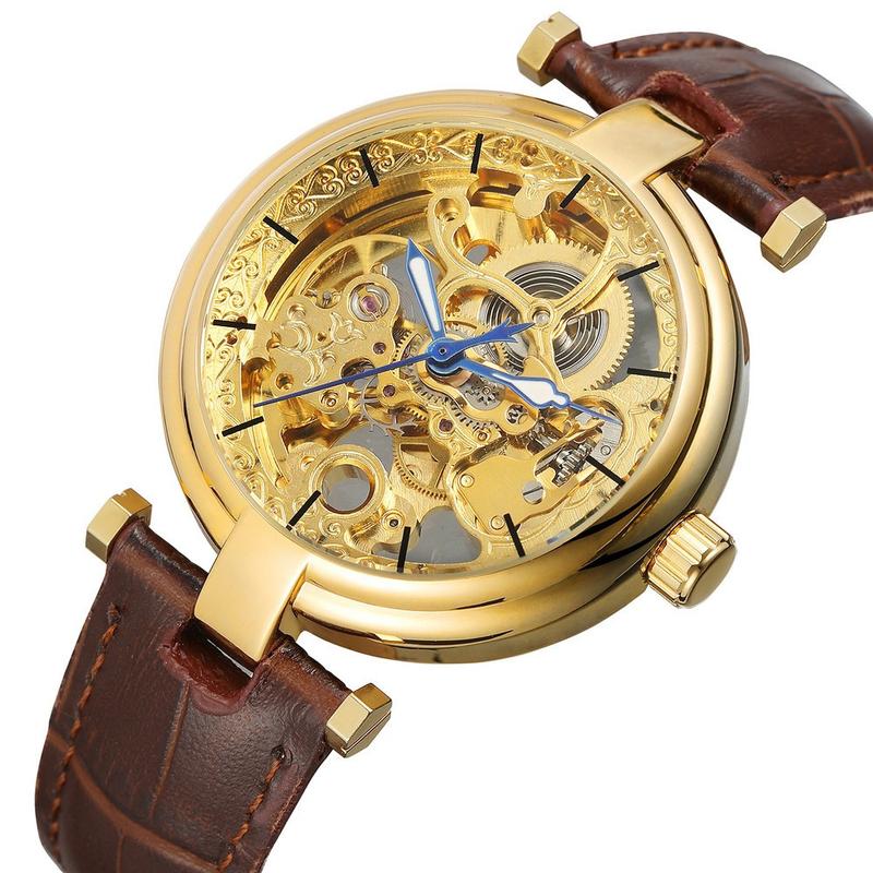 Механические часы forsining skeleton мужские часы с коричневым ремешком