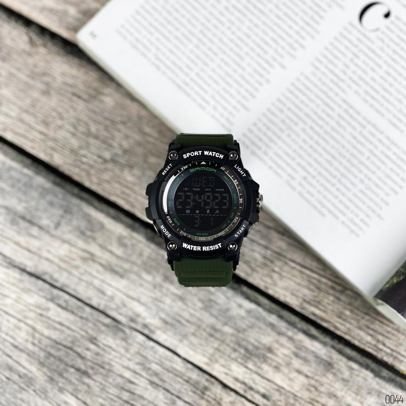 Стильные брутальные часы SandaМодель: 1044-0044Механизм: ЭлектронныйМатериал корпуса и ремешка: ПластикДиаметр корпуса: 50 ммФункции: Часы, минуты, секунды, дата, день недели, секундомер, таймер, 12/24, будильник, подсветка