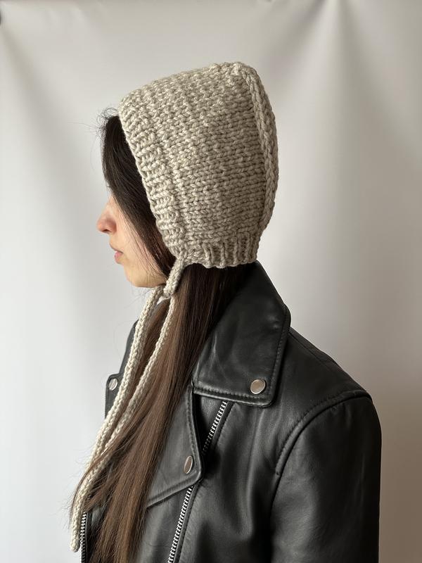 Вязаный мохерный чепчик ручной работы в сером цвете (в наличии)