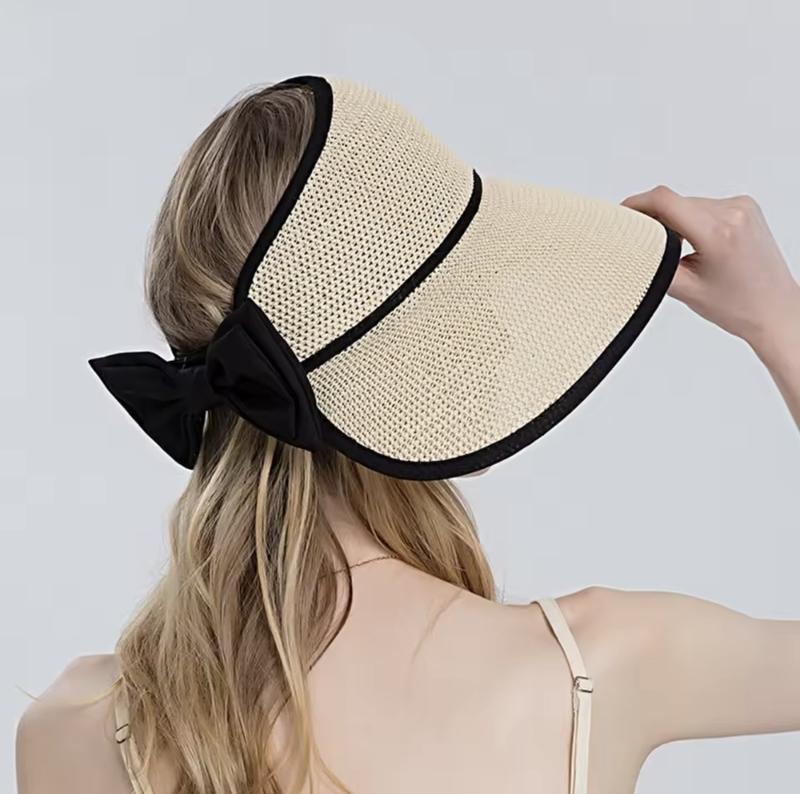 Капелюх (козирок) сонцезахисний жіночий полузакритий капріо з бантом колір молочний 56-62