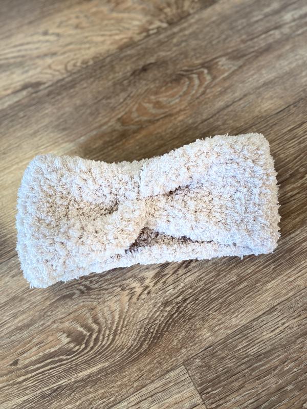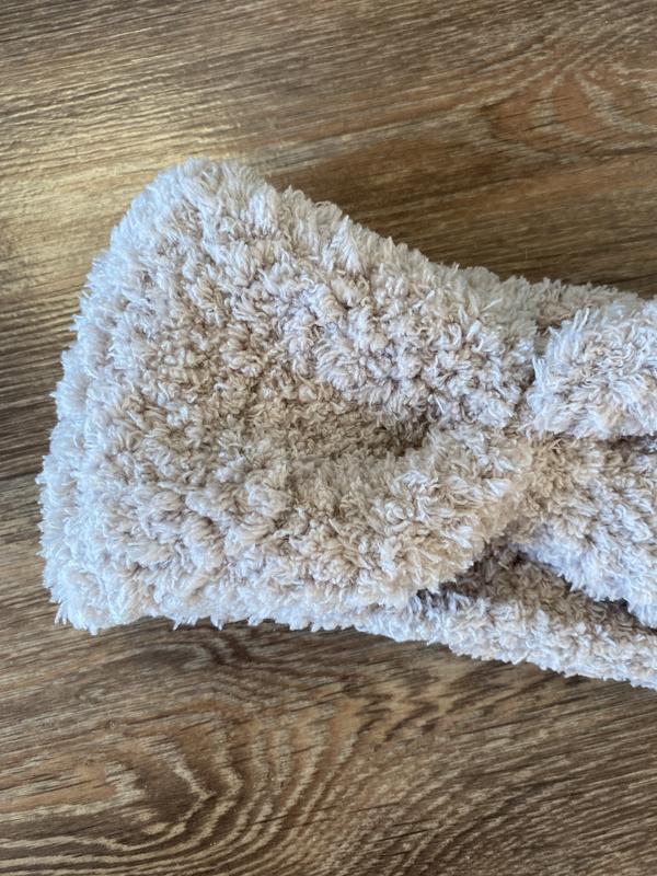 Бежевая серая чалма повязка на голову тёплая вязаная ободок плюшевая