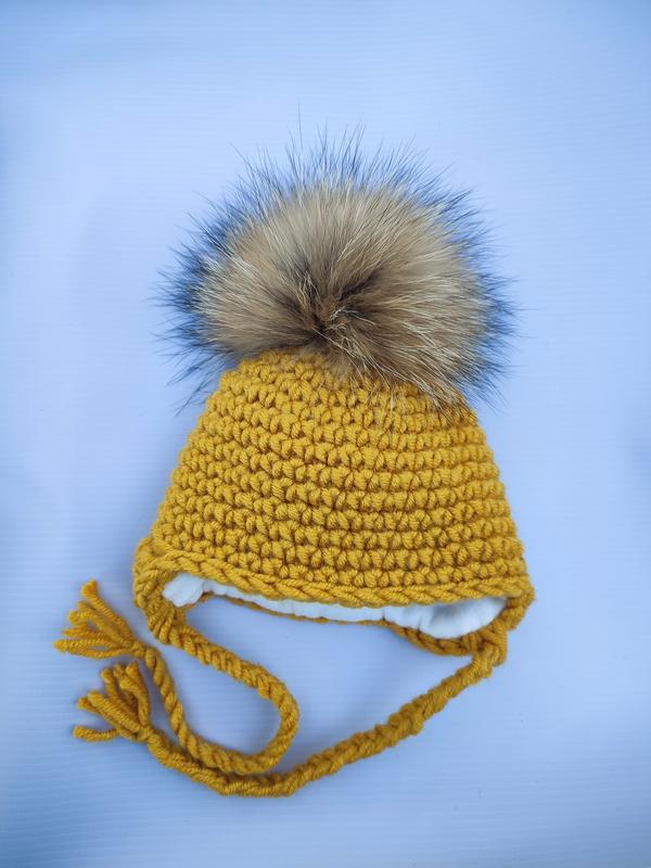 Шапулі ручної роботи з натуральним помпоном з фінської норки.розміри від 0-5років.в'яжемо за вашими замірами