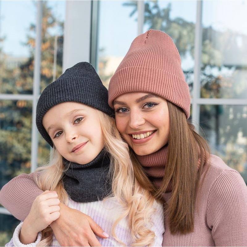 Стильная вязаная шапочка в рубчик в универсальном размере подойдет как детям, так и взрослым, утепленная флисом в области ушей и теплый двойной хомут без флиса.