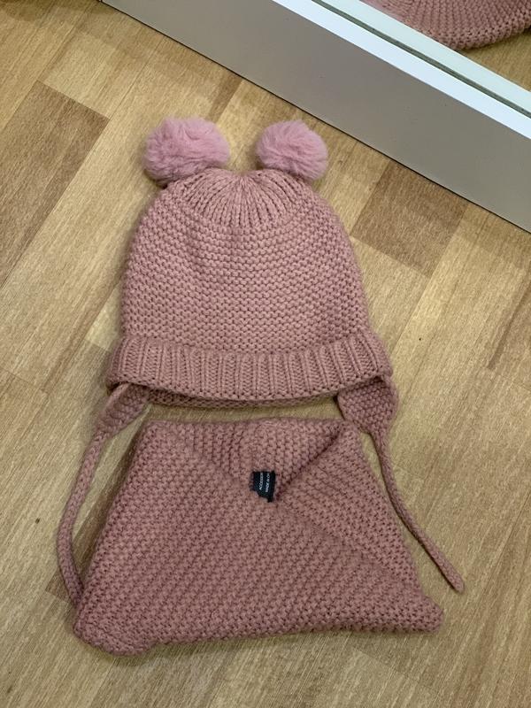 Набір шапочка і хомут дуже гарного кольору фірми zara. Ми носили як восени так і зимою, добре прикриває вушка. Дуже гарна та підходить до будь яких речей. Розмір не пам’ятаю наче до 2х років був вказаний, але ми носили десь до 3,5-4 роки. Орієнтуйтесь по замірам в сантиметрах.