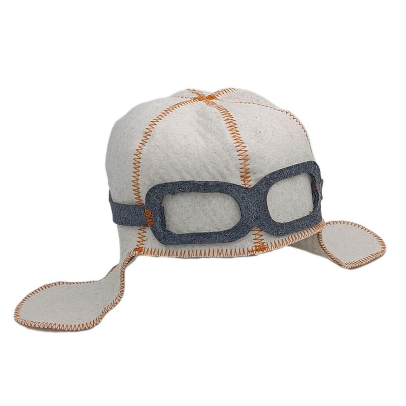 Банная шапка незаменимый аксессуар при посещении бани и сауны. Кроме оригинального внешнего вида или веселого слогана вышитого на ней шапка выполняет очень важную роль - она бережет нашу голову от перегрева. Мы рекомендуем подходить к в выбору шапки для бани и сауны не менее ответственно, чем при выборе другого головного убора. Если вы посещаете баню или сауну регулярно и любите париться при высокой температуре и влажности, то мы рекомендуем приобрести шапки разработанные и пошитые нашей компании. Банная шапка "Летчик" изготовлена из натурального войлока, в составе которого овечья шерсть. Цвет белый с серым . Модель имеет внутри петельку, которая позволяет повесить шапку на крючок . Уход за изделием: - В стиральной машинке изделия из фетра нужно стирать в режиме для шерсти, можно отжимать в деликатном режиме отжима. - Температура воды не должна превышать 40 градусов, особенно если изделия цветные. - Сушить нужно изделие в развернутом виде.