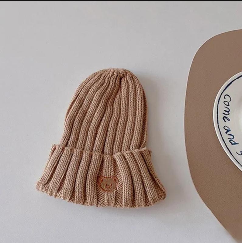 Вязанная коричневая демисезонная бежевая телесная детская шапка шапочка мишка 🐻