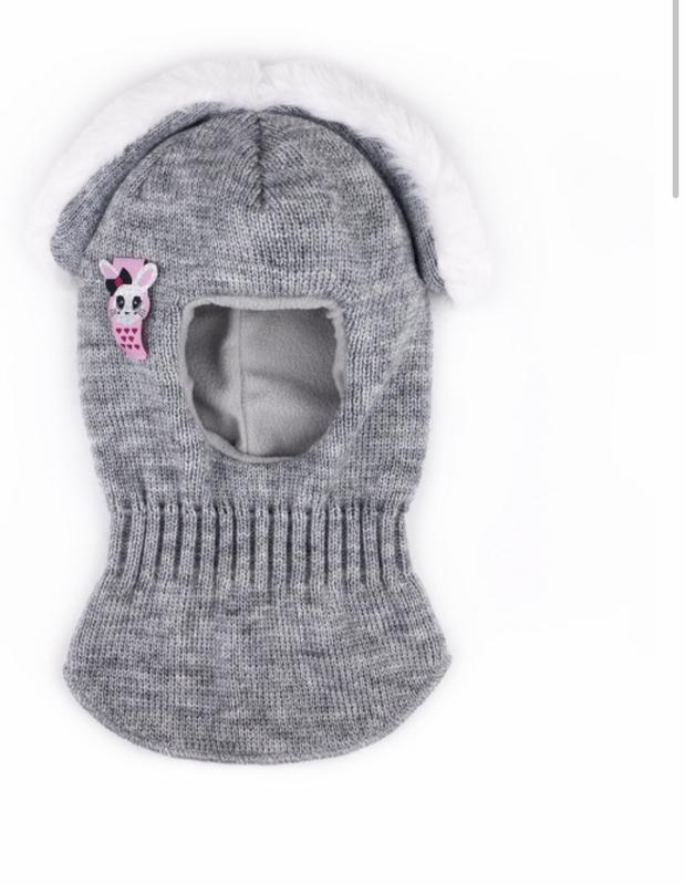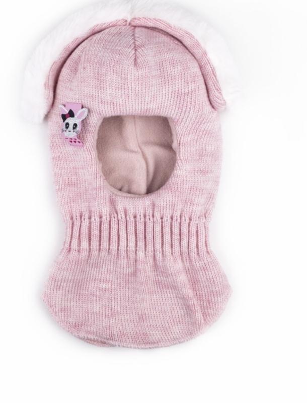Тёплый зимний шлем с необычными меховыми ушками для девочки 1-2 лет. Состав: верх - 50% шерсть 50% ПАН + подклад термофлис