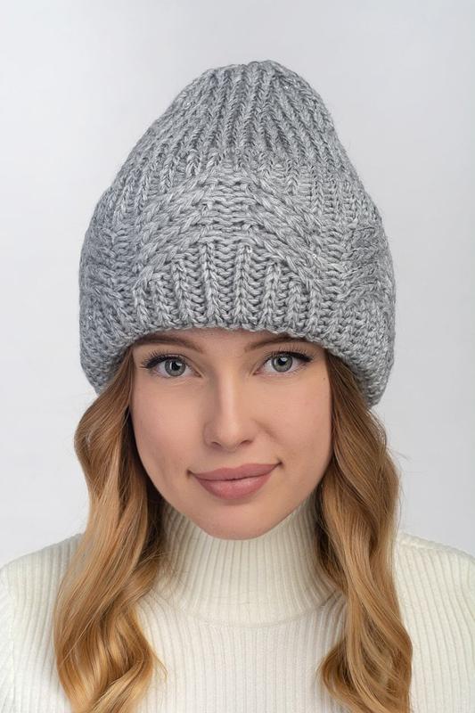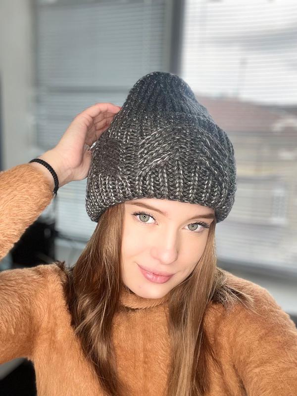 Теплая женская шапка крупной вязки, объемная шапка