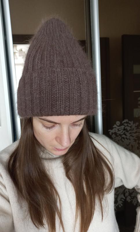 Шапка ручной работы 60% ангоры коричневого цветаНе кусается, поскольку есть флисовая подкладкаНа холодну зимуОдетая на кипячесть головы 57 смВысота 26 см