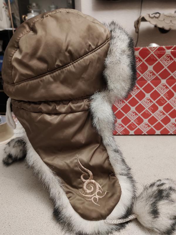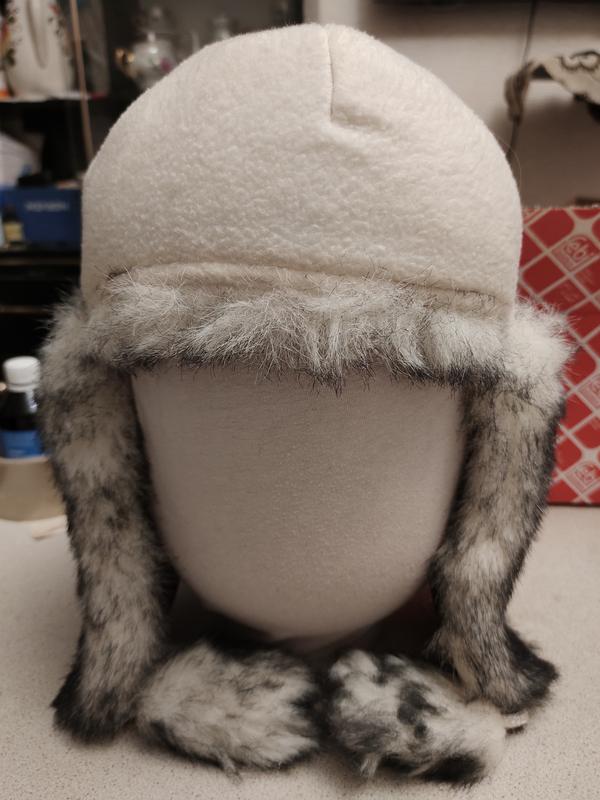 Снаружи - приятная, мягкая плащевка, изнутри - тёплая флисовая ткань и тонкий слой синтепона. Шапочка украшена искусственным мехом, красиво смотрится на головке, легкая, имеет состояние новой вещи. Арт. 0233.