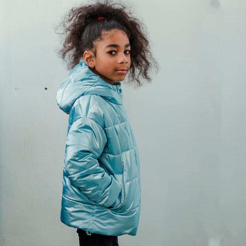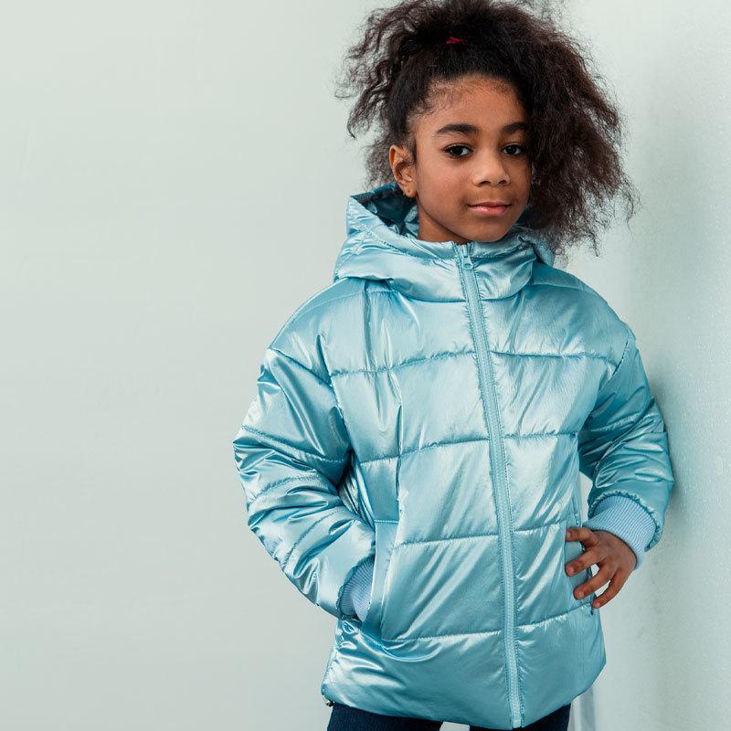 Выберите демисезонную детскую куртку для девочки в голубом цвете, чтобы
