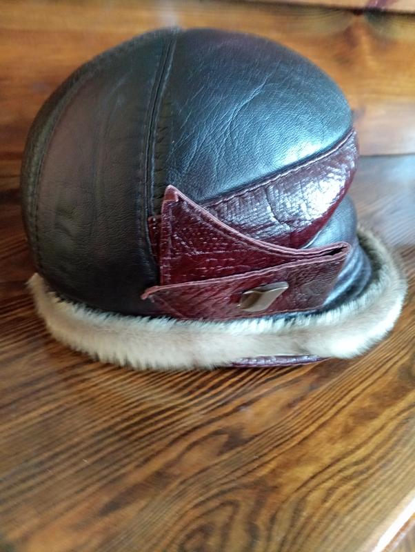 Классная шапка кожаная,цвет тёмный бордовый,натуральный мех из песца, внутрь на флисе.Ззади на затяжке,объем головы можно корректировать,идеальное состояние, без следов носки