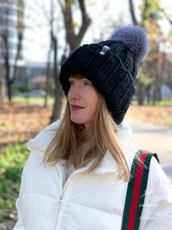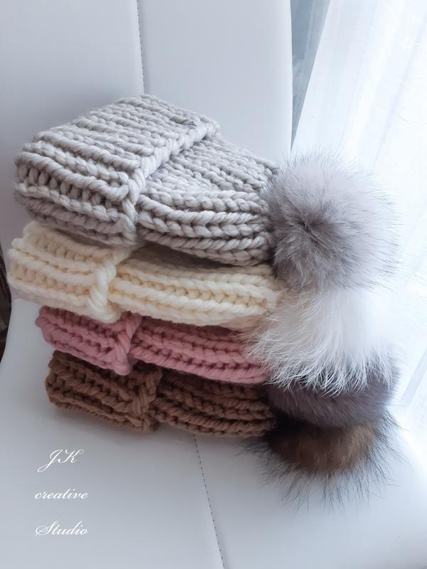 Готовимся к холодам вместе!🤗 Теплые шапки из шерстяной пряжи с меховым помпоном!