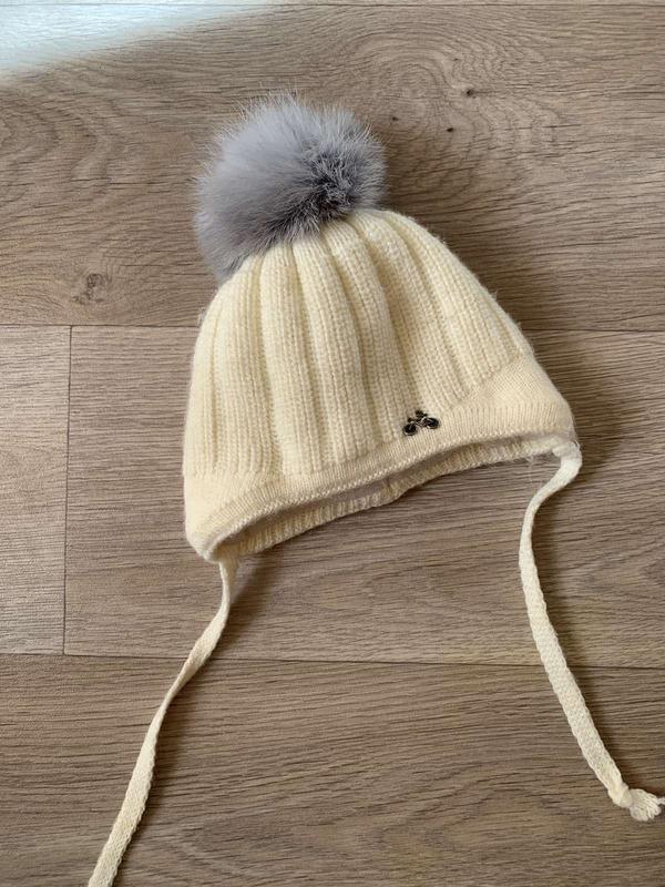 Шапка вязаная по заказу с натуральным мехом. На 3-6 месяцев (500)