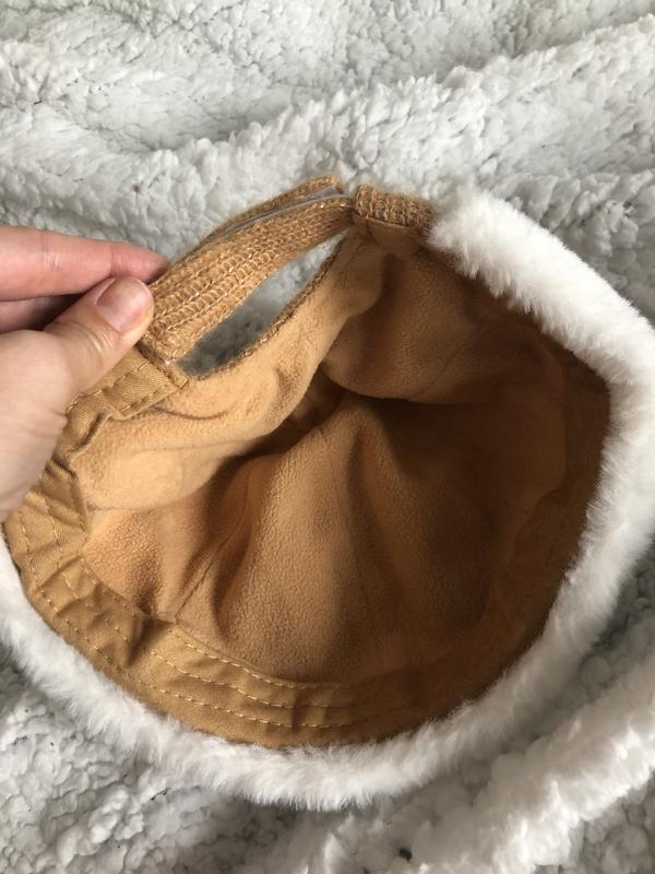 Шапка-ушанка панда с ушками (мишка, медведь, капюшон) с завязками, унисекс карамельная