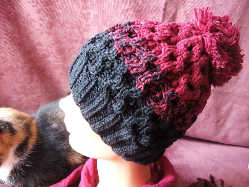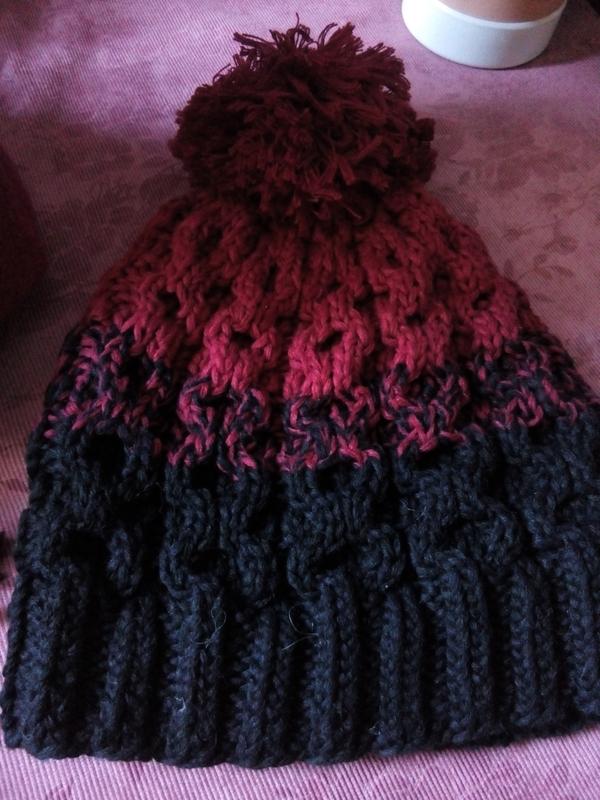 Шапка Спицами.Тренд сезона.Оригинальная.Цвет красный,не розовый.