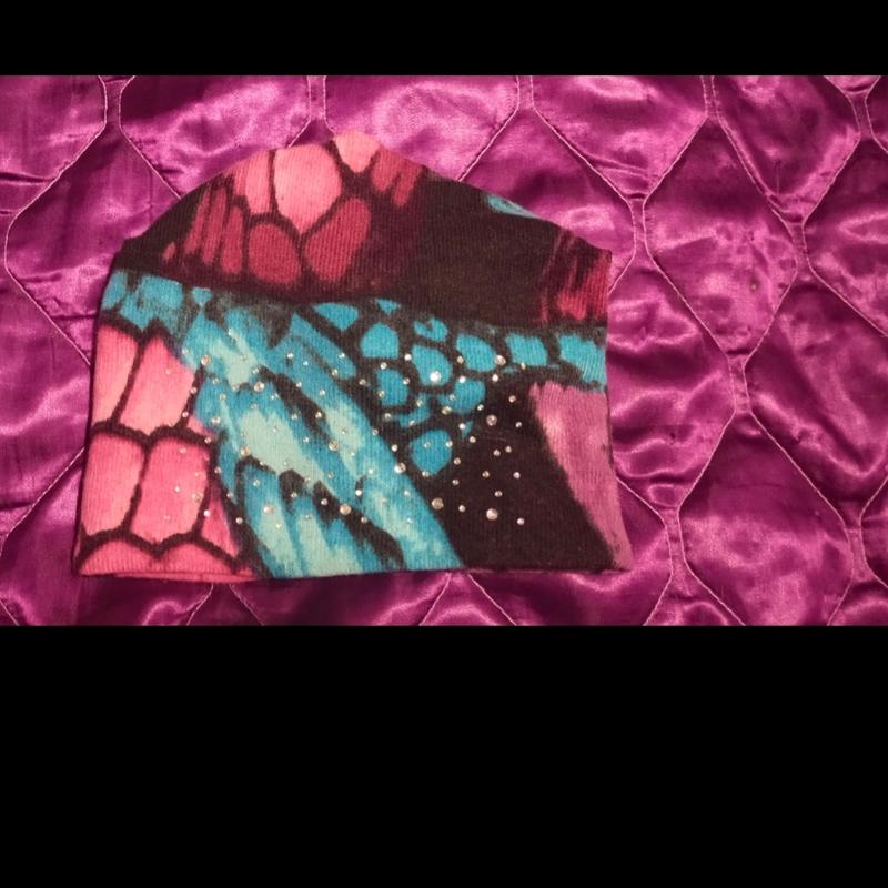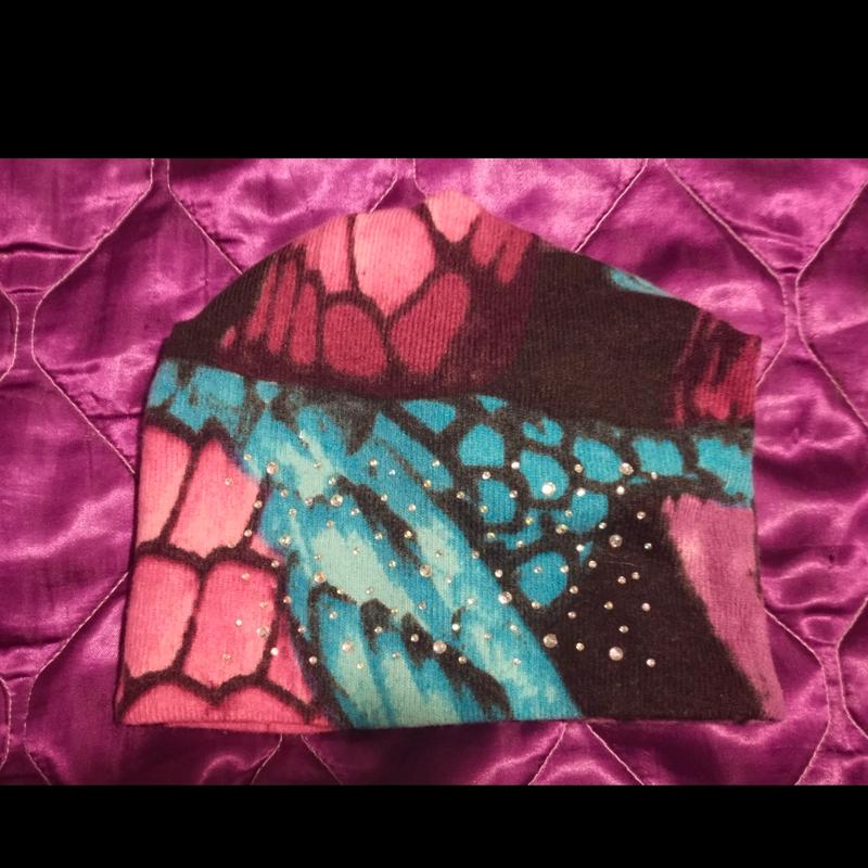 Б/уШапка цвет голубая розовая страззикамиШерсти 40Полиэстер 60С флисомДлина 23 смШирина 46 -54 смКнопка взади отстегивается
