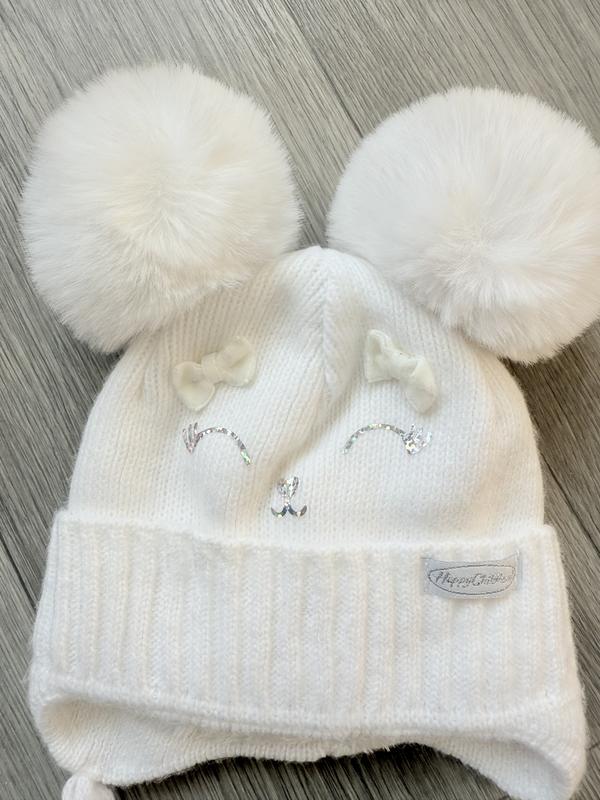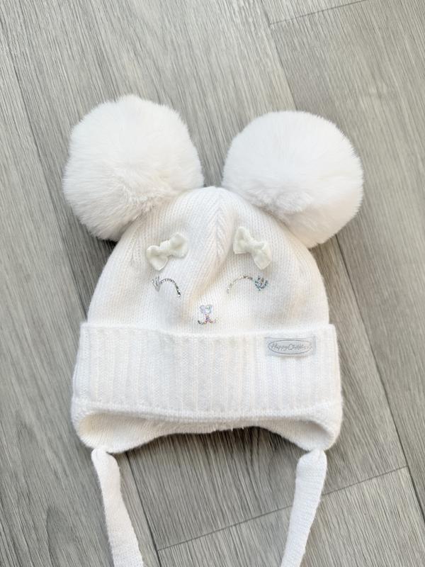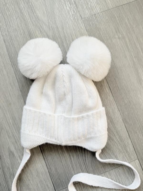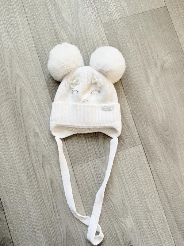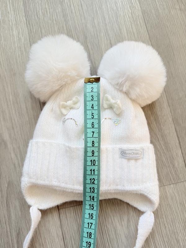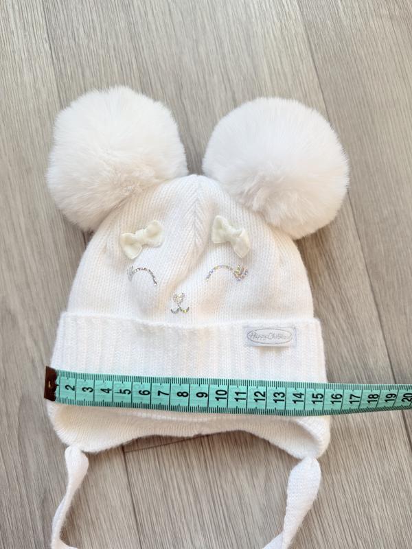 Белая зимняя шапочка с меховыми ушками на девочку Kraft размер 36- 38 на 0- 3 месяца. Стан идеален, была одета один раз на выпуске